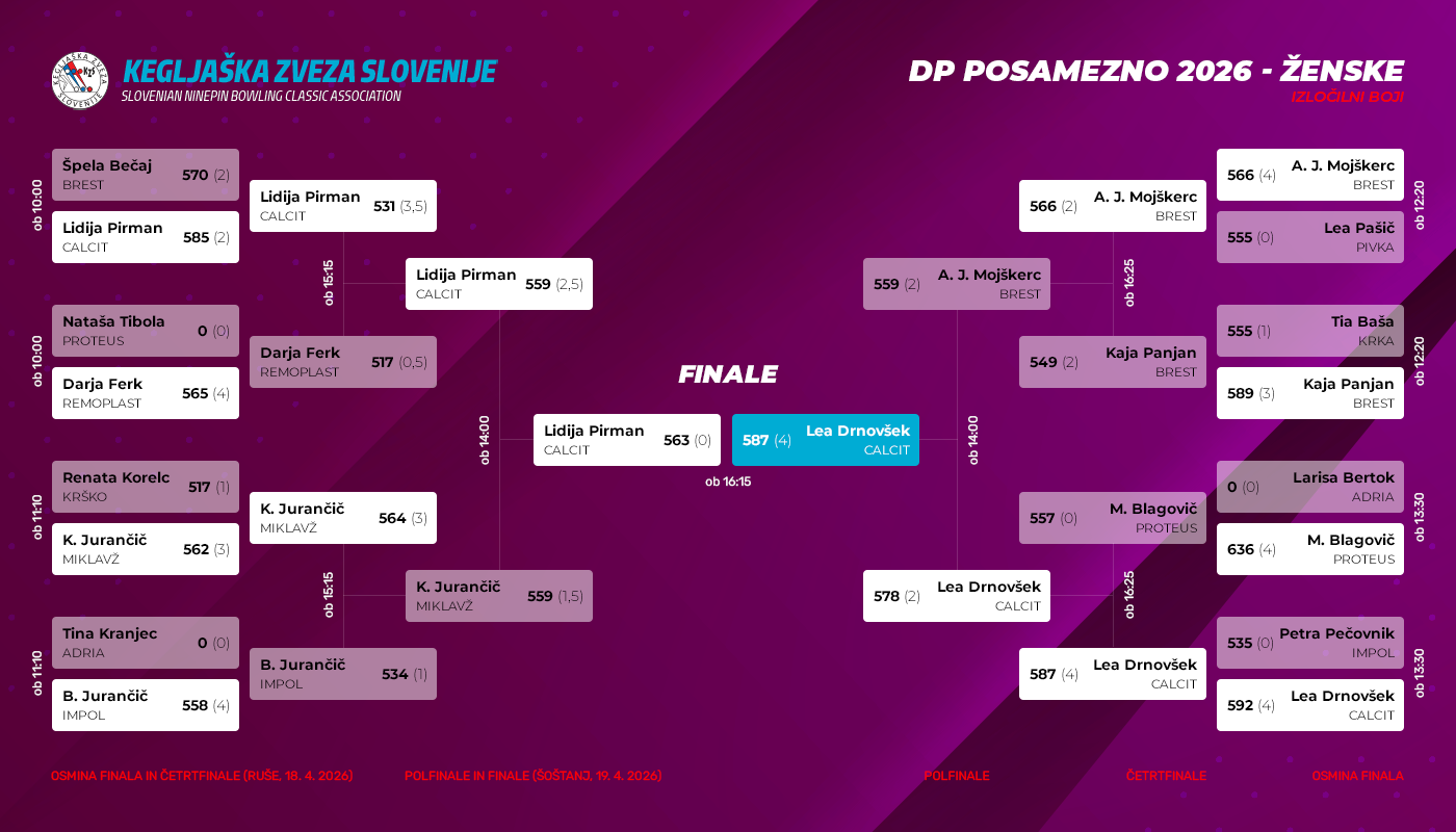 Posamezno – končni vrstni red: Moški – Ženske